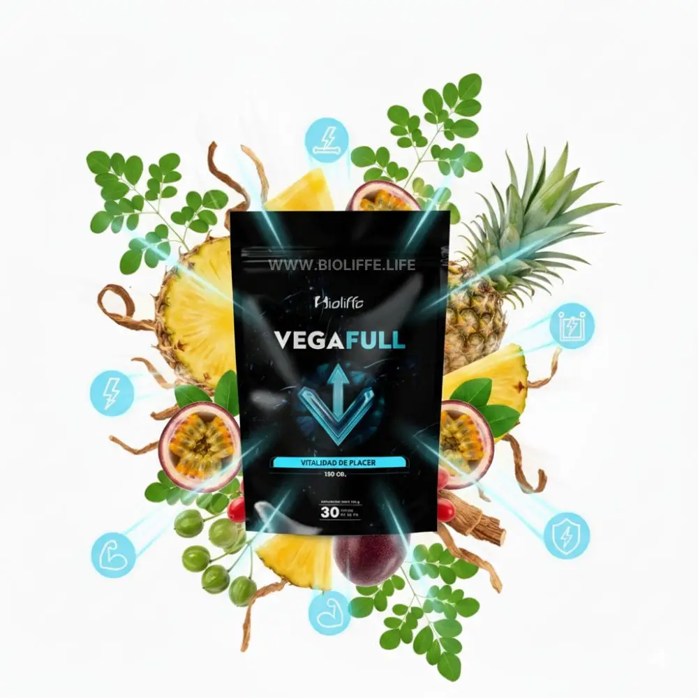 Vegafull es un suplemento en polvo que funciona como un vigorizante natural, diseñado específicamente para mejorar la vitalidad, el rendimiento y la energía masculina. Su fórmula única combina el poder ancestral de ingredientes como el Huanarpo Macho y la Uña de Gato con la riqueza nutricional de la Moringa liofilizada, creando una sinergia que no solo aumenta la energía sexual, sino que también fortalece el sistema inmunológico y combate el estrés.